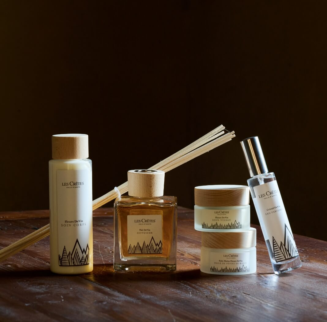 Du raisin aux soins naturels, Les Crêtes vous proposent la ligne cosmétique DeVin avec sa formule verte à base d’huile de pépins de raisin naturelle et biologique, de polyphénols de raisin et de fleurs de vigne, 0% parabènes, pétrolatum, paraffine et EDTA.