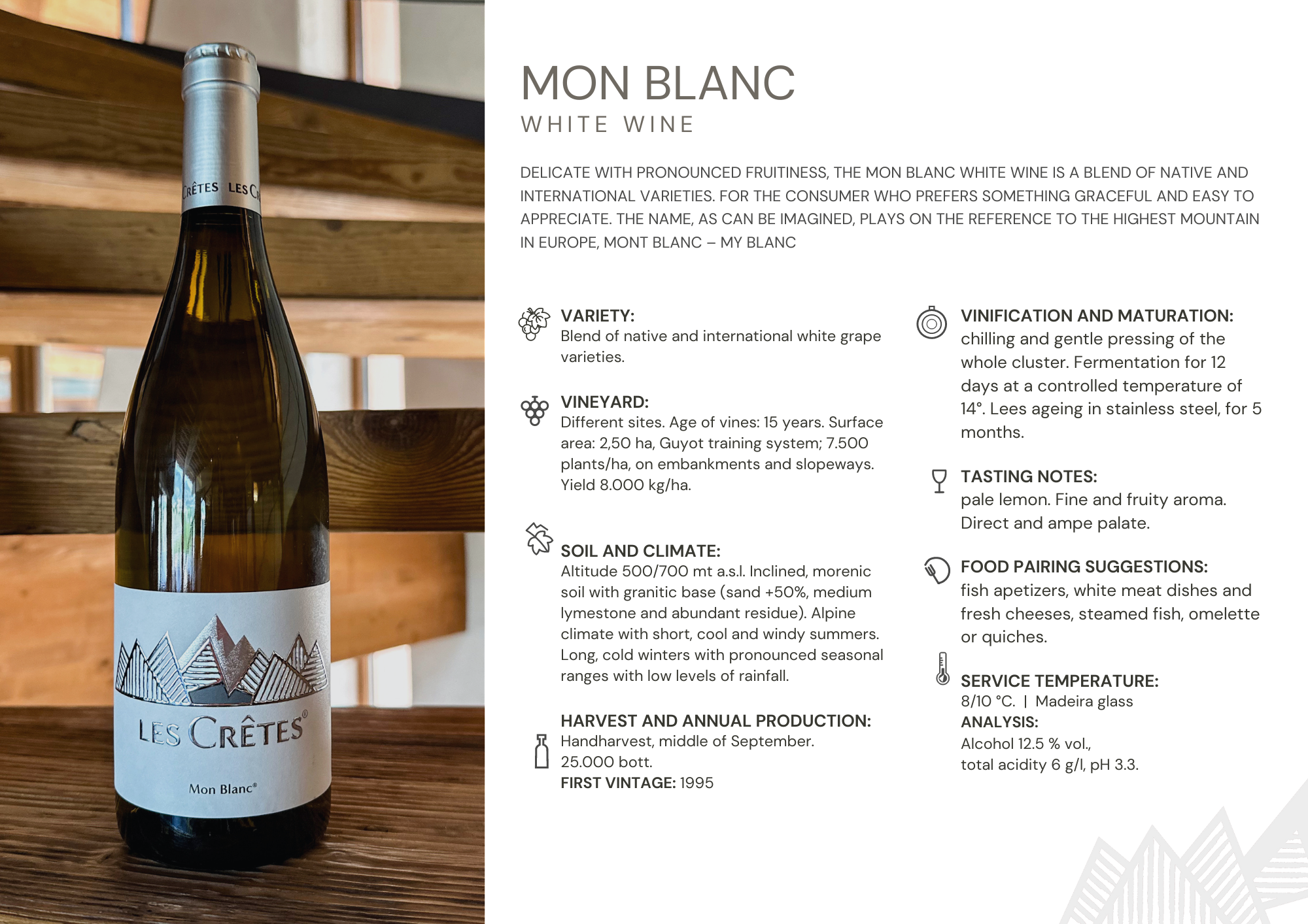 Il est destiné à ceux qui veulent un vin agréable et facile à boire. Son nom vient d’un jeu de mots (Mon Blanc et Mont Blanc signifient Mon Blanc et Mont Blanc).